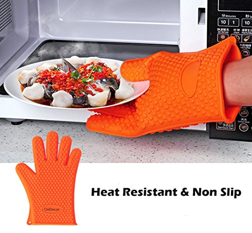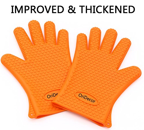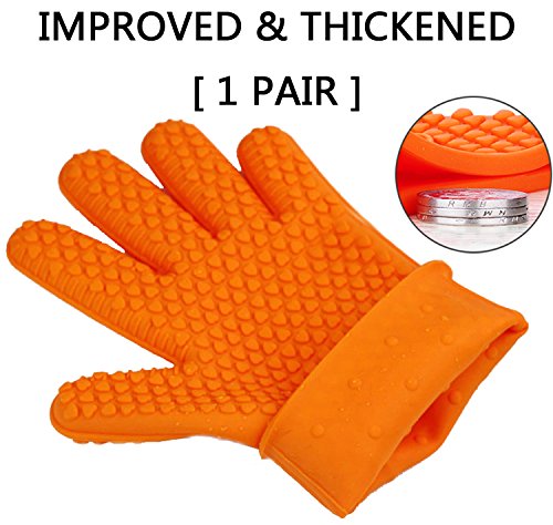 - IMPROVED AND THICKENED VERSION: Made of food-grade silicone, which is safe, heat resistant, durable, non toxic and non-stick. Not like the normal silicone gloves, these gloves are improved in material heaviness, and will be better in preventing heat.