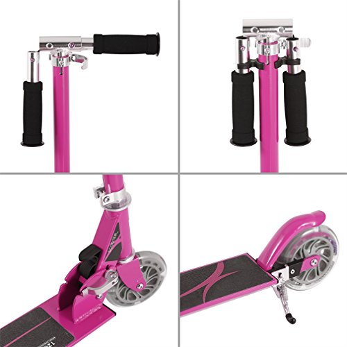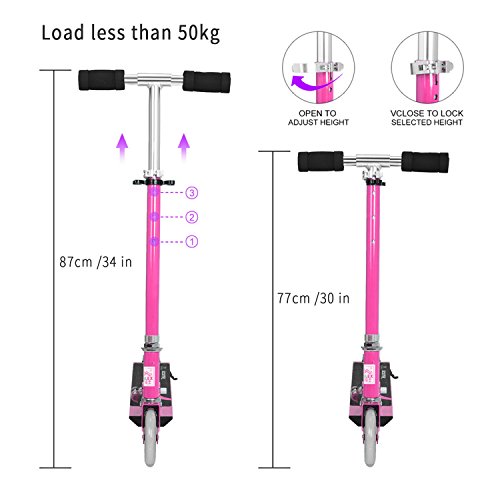 High Quality PU Wheels with LED Light: Scooter with PU Wheels are both smooth and quiet and high quality bearings reduce vibration and make a smoother ride. LED Light Let the children enjoy playing well.