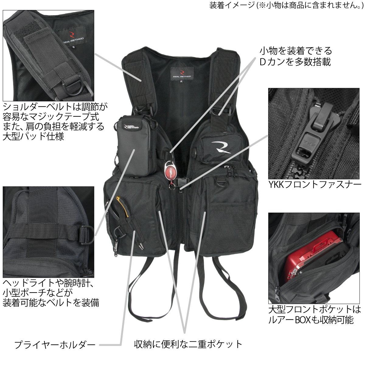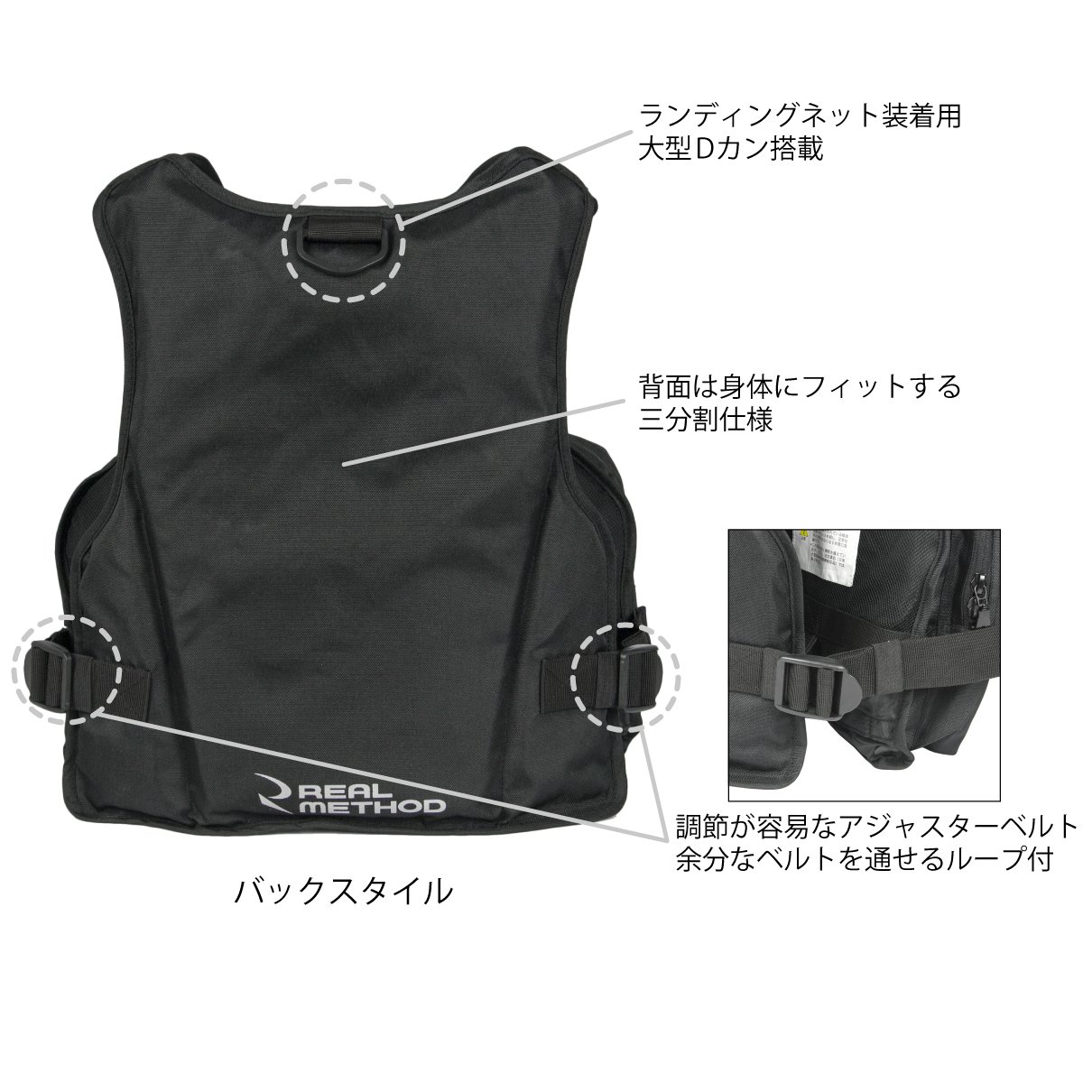 ● Convenient plier holder / YKK front fastener / Convenient double pocket / convenient storage pocket for storage / three-piece specification on the back fit / body fitting for landing net installation / easy adjustment of the landing net