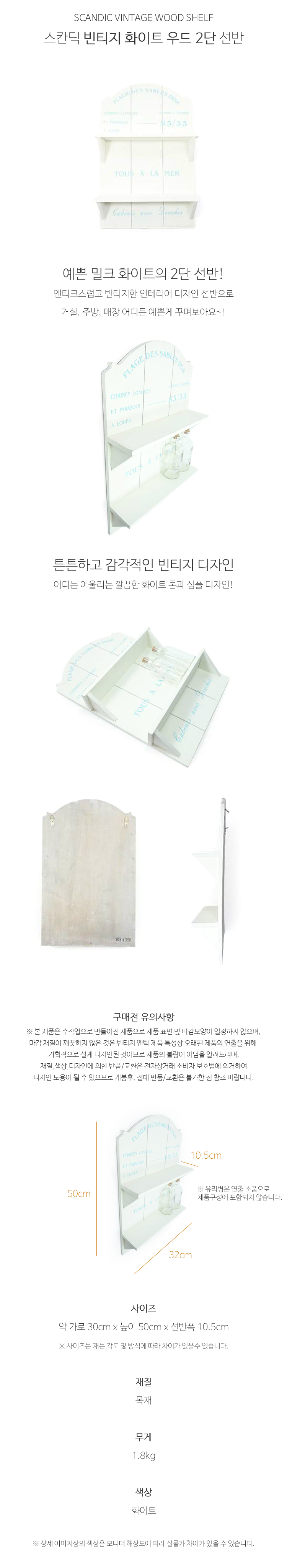 - 품명 및 모델명스칸딕 빈티지 화이트 우드 2단 선반
