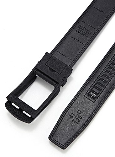 EXACT-FITTING: No More Holes in the strap any more.This belt provides a 32 uniques sliding positions in the ratchet of strap which enable you a micro adjustment to adapt your waist variation. Idea Size Mark on strap and Easy-Swapping Design in buckle, It allows you a Exactly-Fitting size by simply taking off the strap and cutting accordingly. In Case Buy Bigger, No Need To Return, Just Cut It to Fit!