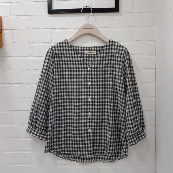 귀여운체크블라우스입니다