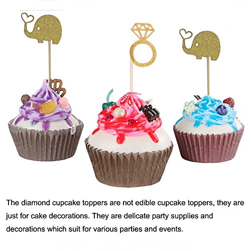 ❤Package includes:10pcs elephant cupcake toppers+10pcs diamond ring cupcake topper.