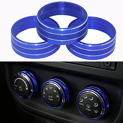 Camoo Audio Air Conditioning Button Cover Decoration Twist Switch Ring Trim for Jeep Wrangler JK JKU Compass Patriot 2011-2016 3PC/SET (Blue)