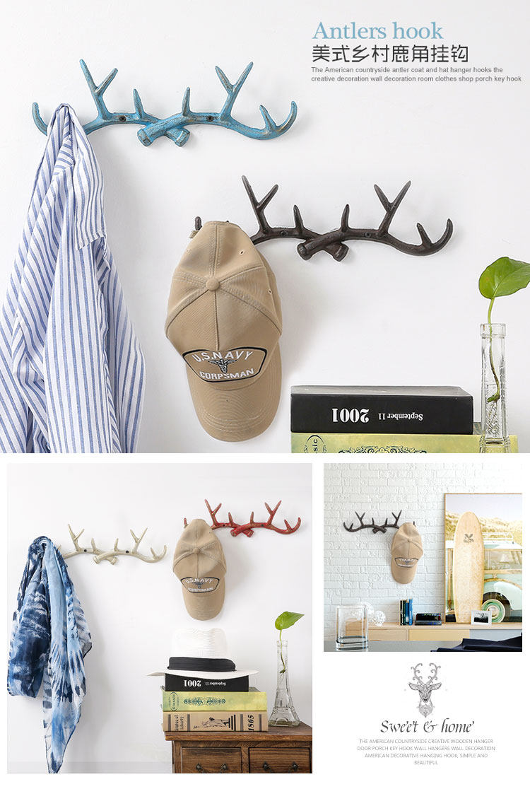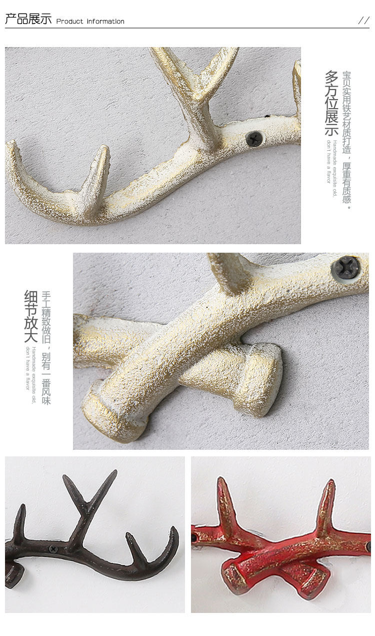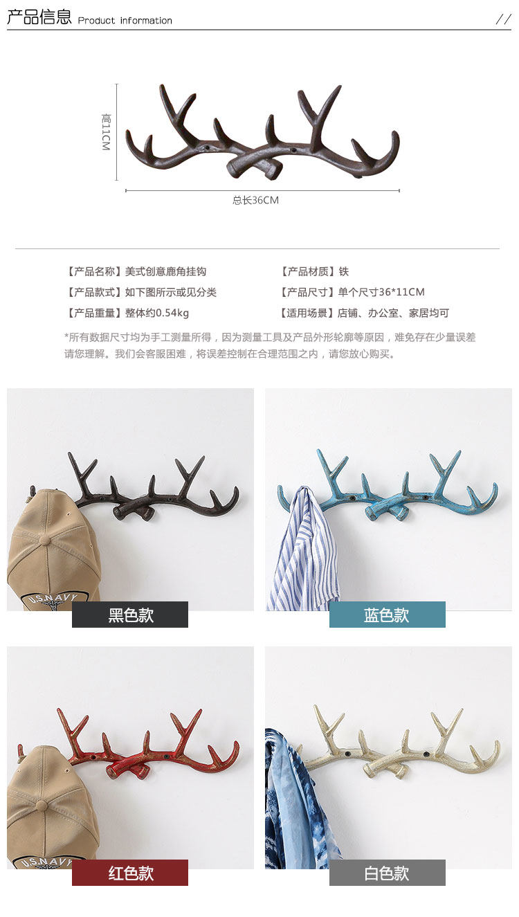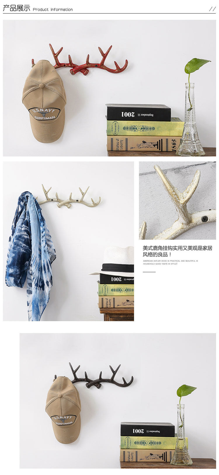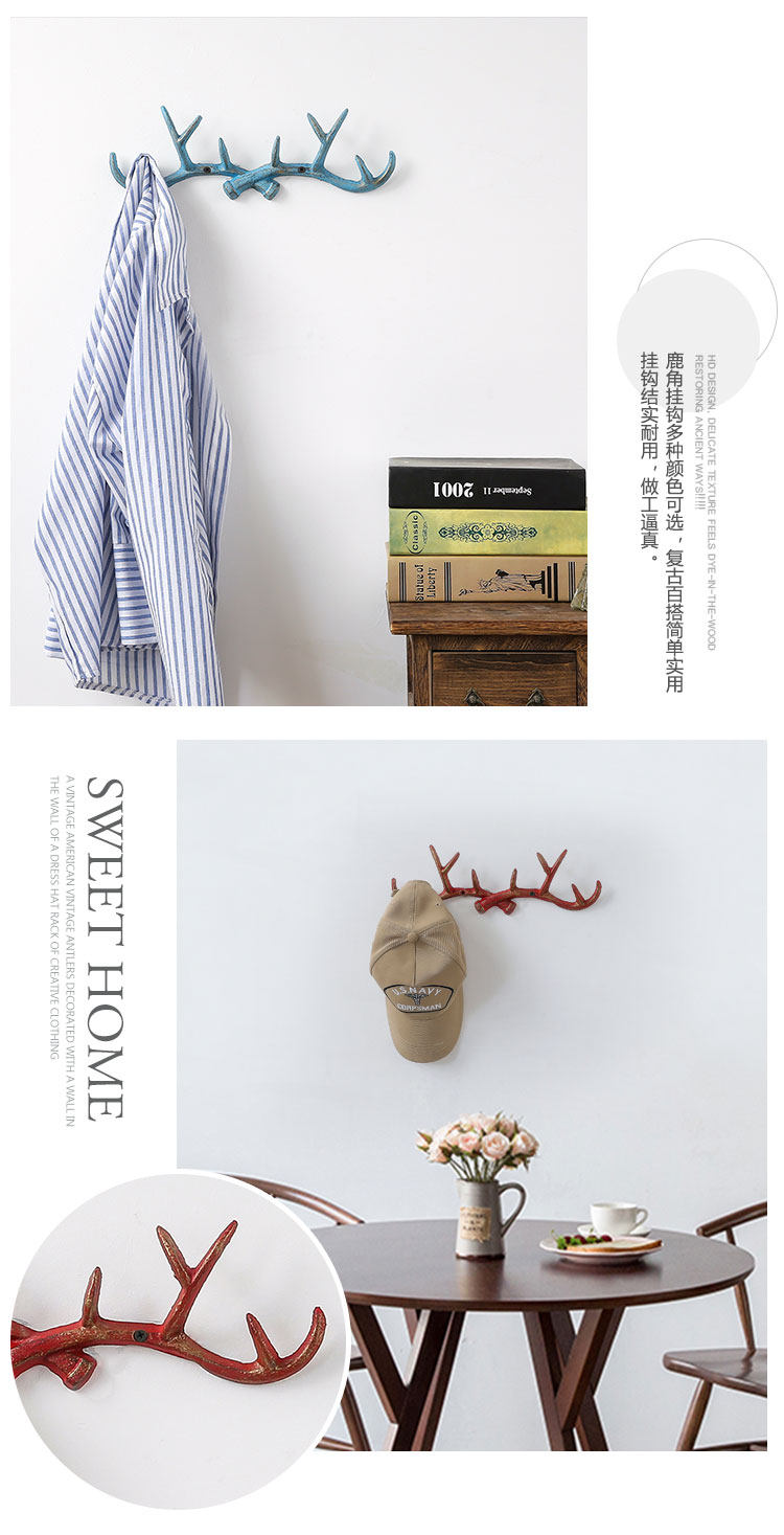 鹿角钥匙挂钩美式创意铁艺门口钥匙挂墙上个性挂衣钩壁挂墙面装饰