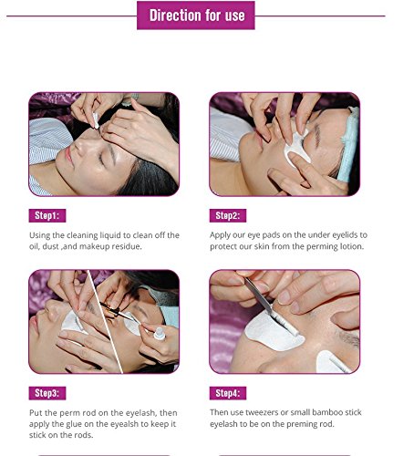 - Guid for beauty specialist:1.First application (Pink) : Curling agent ,make eyelash natural curly. 2.Second application (Light Blue) : finalizing agent,keep eyelash Curled about 3 months. 3.Third application (Yellow) :This is a nutritive liquid.