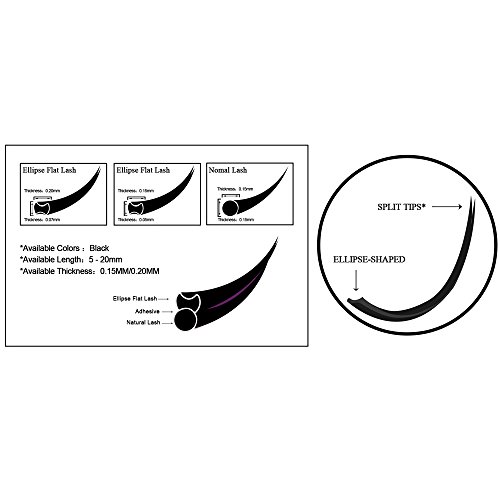 Ellipse Flat Eyelash Extensions Matte Black0.15mm thickness D Curl 14mm 1Tray for Professional Salon Use