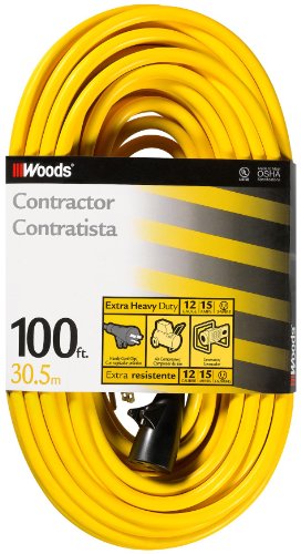 Woods 992555 12/3 SJTW High Visibility Extension Cord with Cord Clip, 100-Foot, Yellow