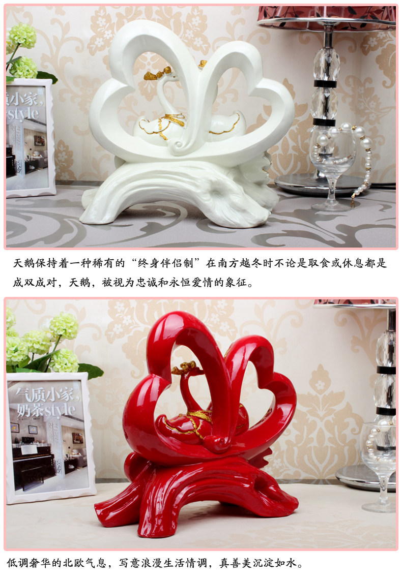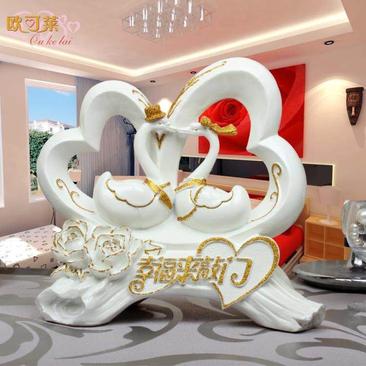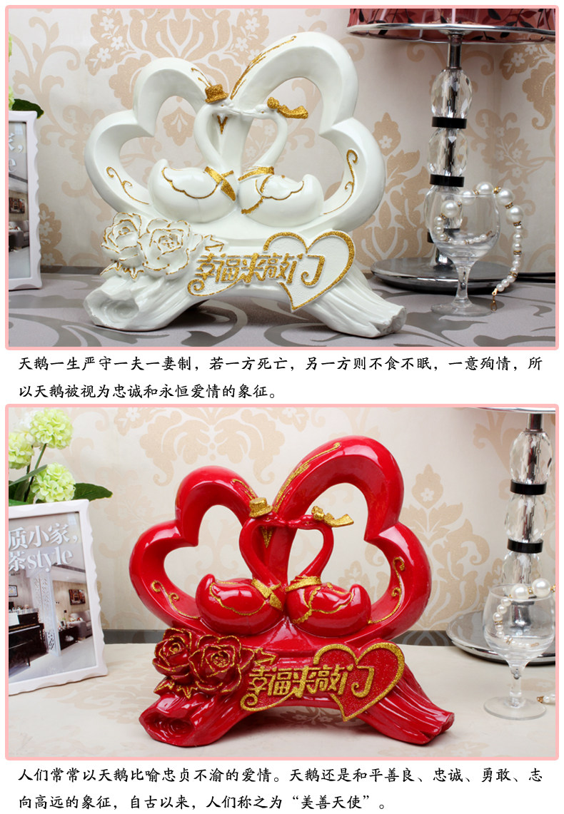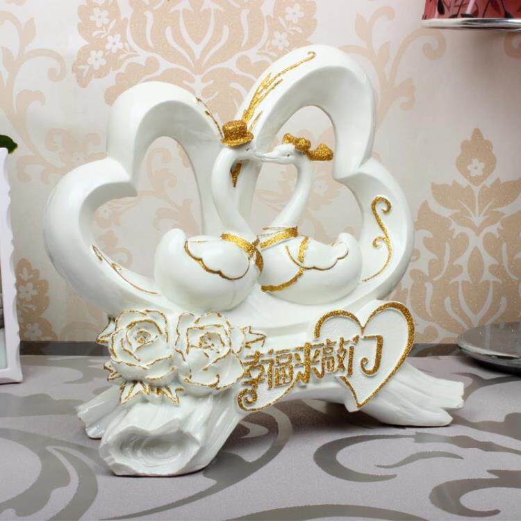 欧式树脂工艺品天鹅摆件结婚礼品幸福来敲门创意时尚高档家居礼品