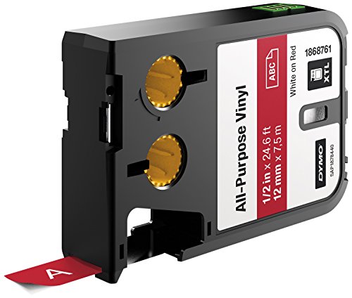 DYMO All-Purpose Labels for DYMO XTL Label Makers, White on Red, 1/2", 1 Roll (1868761)