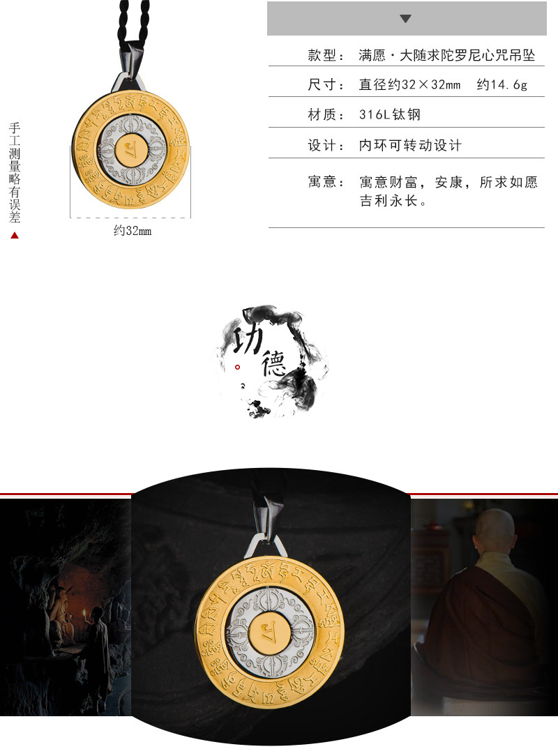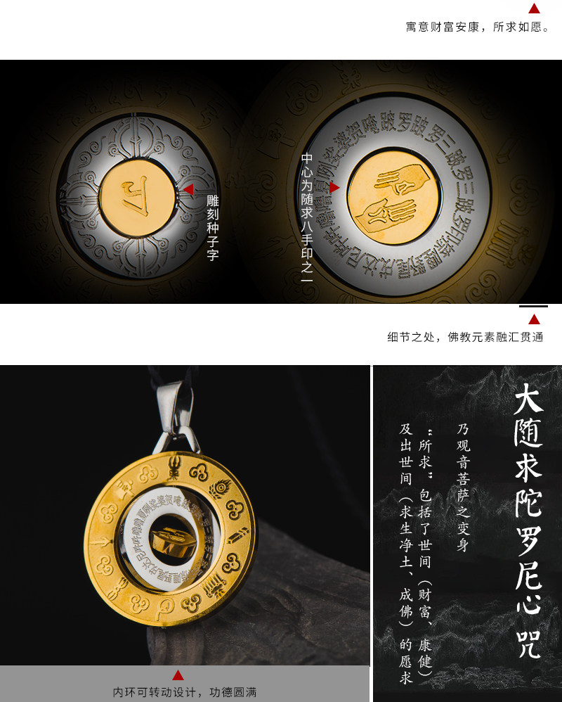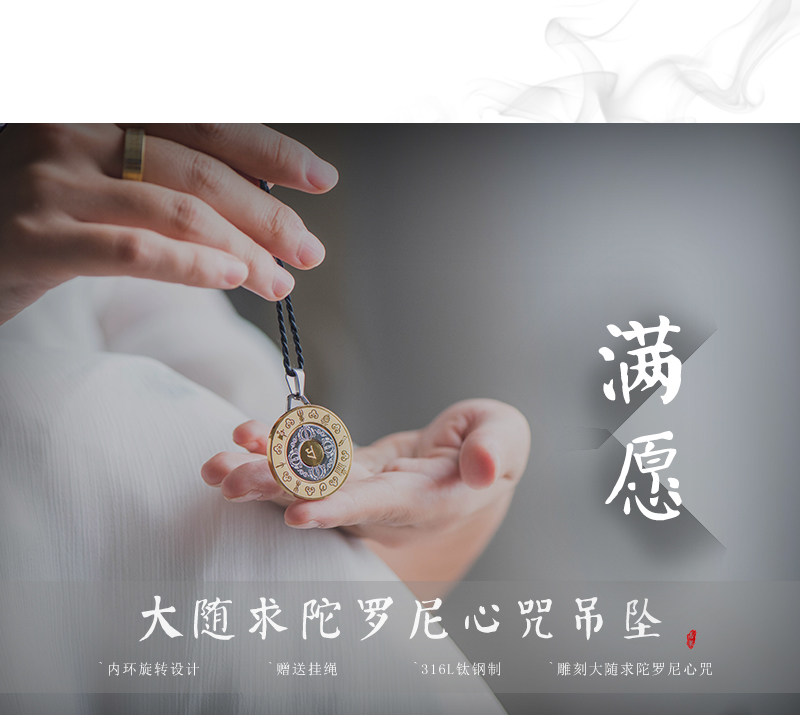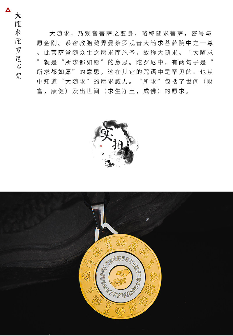 大随求咒吊坠男钛钢开光护身符项链女招财转运平安符挂件情侣饰品