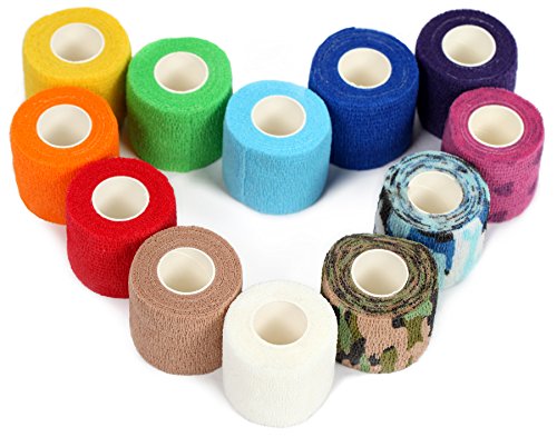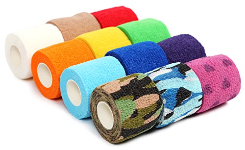 Kenley Vet Wrap 2-inch Cohesive Bandage - Self-adherent Medical Athletic Elastic Gauze Tape - Bulk Set of 12 Colorful Rolls