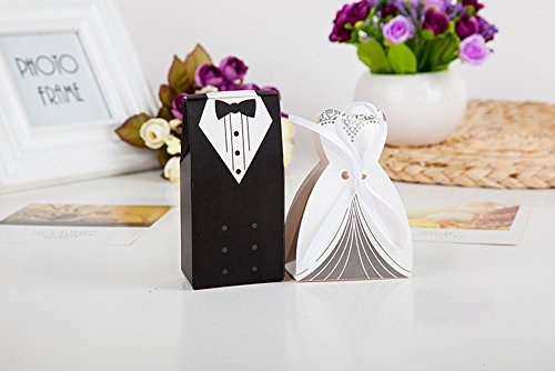 Kollway Wholesale 100pcs Tuxedo Dress Groom Bridal Wedding Party Favor Boxes Ribbon Box Candy Gift (1)