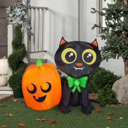 Product Description Enhance the look of your home decor with this Airblown Inflatable by Gemmy Industries. This brightly colored Inflatable will surely grab the attention of visitors, guests, and passersby. Plug it in, stake it down and watch the magic of this Airblown inflatable unfold. Use multiple Inflatables for an even more dramatic effect. Complete the Halloween atmosphere with Airblown Inflatables by Gemmy Industries. Airblown Inflatable-Cat and Pumpkin by Gemmy Industries 0