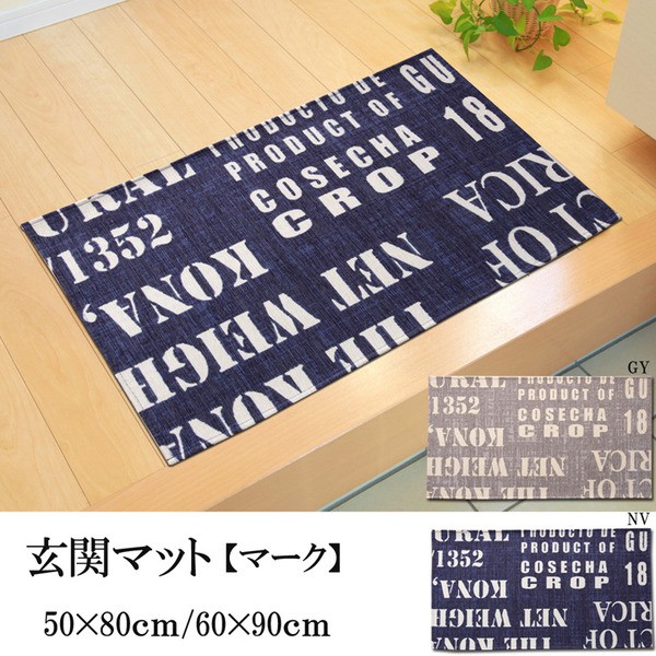 【商品名】洗える 英字柄 玄関マット ウェルカムマット 『マーク 玄関マット ウェルカムマット』 ネイビー 約60×90cm 滑り止め加工