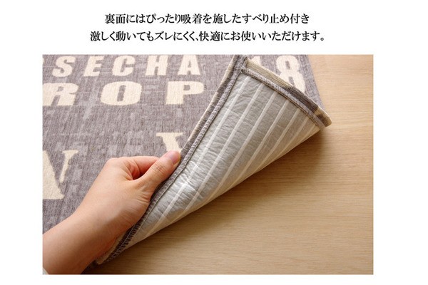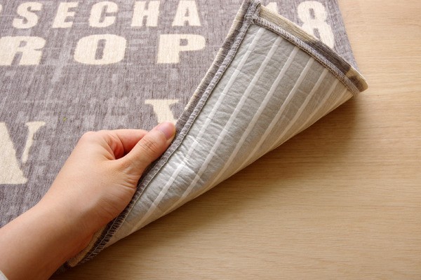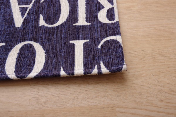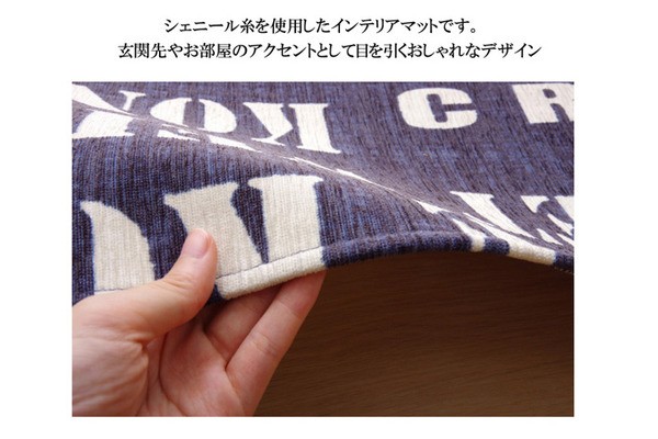 人気の英字柄をシェニールプリントした玄関マットです。裏地は吸着タイプの滑り止め加工をしておりますので、非常にずれにくいです。