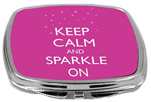 Rikki Knight Compact Mirror, Keep Calm and Sparkle On Rose Pink