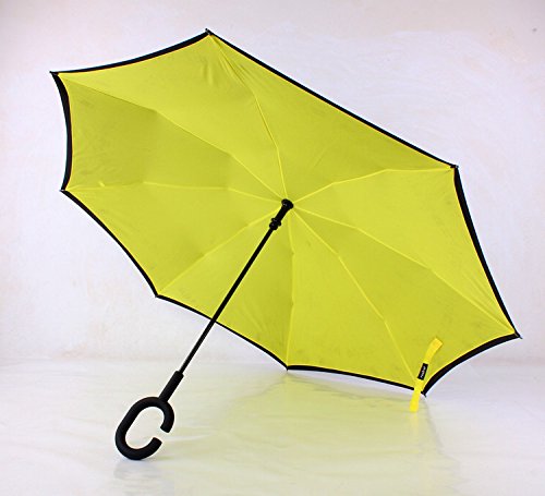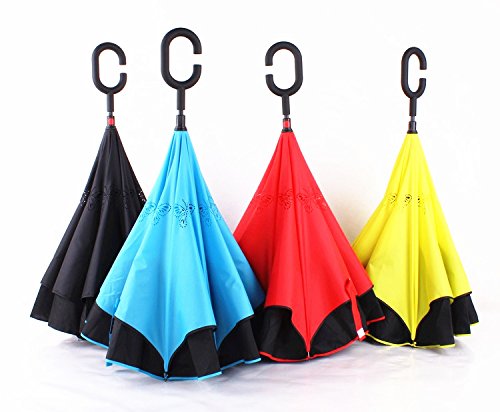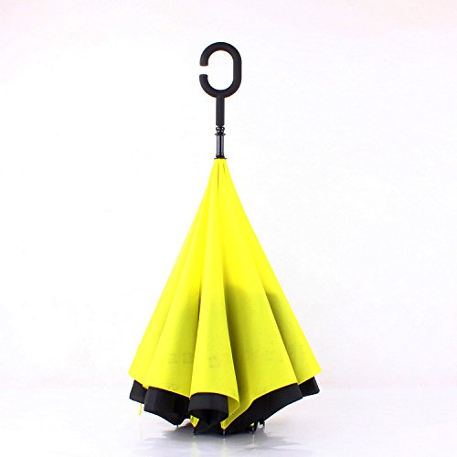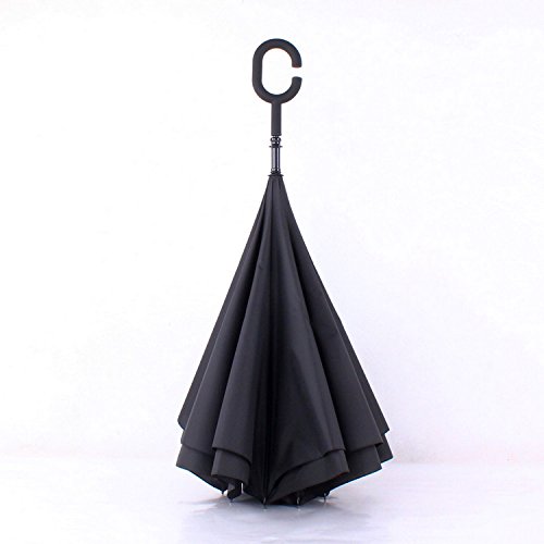 -. Title : Inverted Umbrella Reverse Umbrella Windproof Folding Double Layer Inverted Umbrella and Self Standing Inside Out Rain Protection Umbrella with C-shaped Hands Free Handle HU002