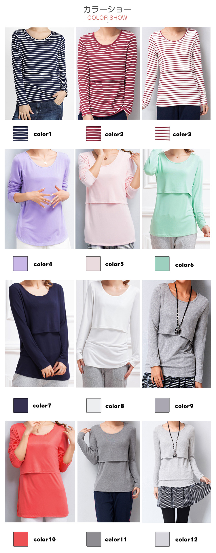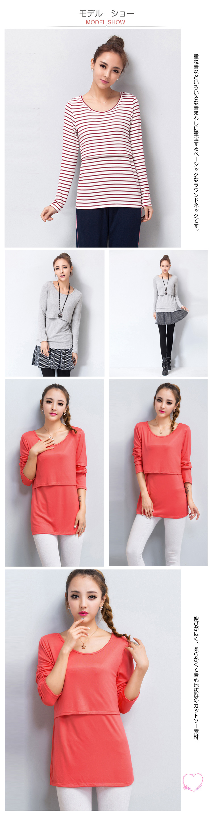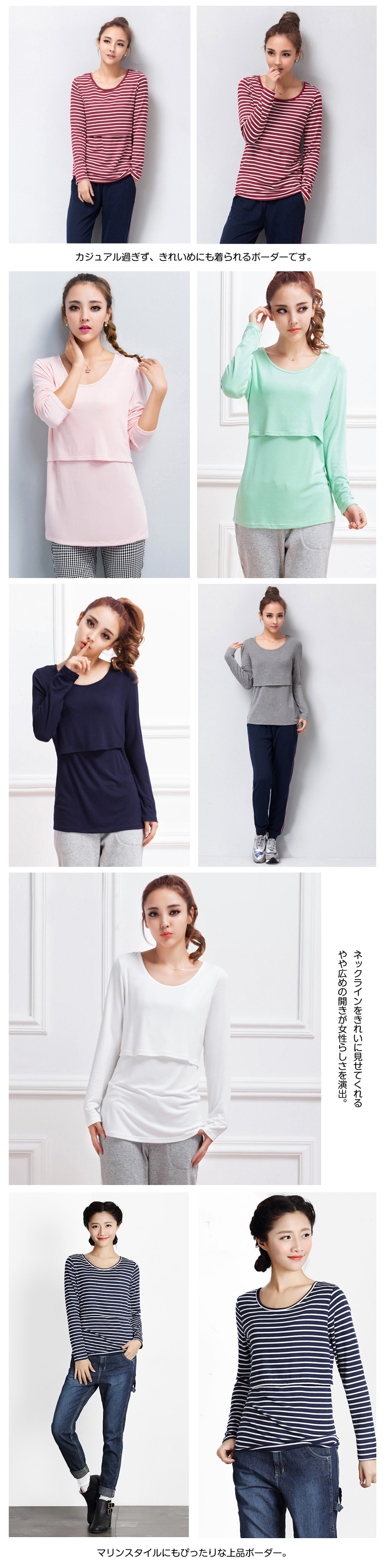 | やわらか授乳口付クルーネックTシャツマリンスタイルにもぴったりな上品ボーダー。伸びが良く、柔らかくて着心地抜群のカットソー素材。重ね着などいろいろな着まわしに重宝するベーシックなラウンドネックです。ネックラインをきれいに見せてくれるやや広めの開きが女性らしさを演出。カジュアル過ぎず、きれいめにも着られるボーダーです。フロントの切り替えの内側が授乳口になっています。 | |