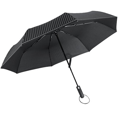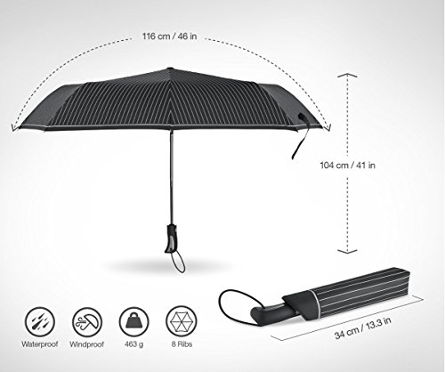 -. Feature : STYLISH: Classic 8K black and gray vertical pinstripe print, stylish, simple and elegant.Perfect for business and travel purposes, highlighting your temperament. / BUILT TO LAST & WINDPROOF: 8 high-grade fiberglass ribs providing the perfect balance of elasticity and rigidity. Strong aluminum alloy center pole and reinforced sewn edges make the frame more durable to withstand strong, gusting winds. / USER-FRIENDLY: With ergonomic anti-slip handle, the line perfectly fit holding hand. Automatic compact, with one-touch open and close button; provides instant shelter to sudden rain. / WATER-REPELLENCY & QUICK DRY: 210T high-density fabric and hydrophobic coating deliver superior water-repelling performance; canopy dries instantly by simply shaking off the raindrops. / GENEROUS SIZE: 104 cm canopy easily shelters 1 - 2 people; complete protection from downpours and high winds. Warranty: We provide you with ☂Lifetime☂ warranty since the date of purchase, please feel free to purchase.