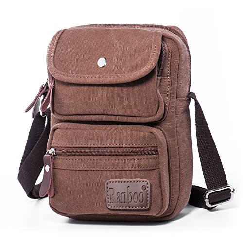 -. Title : Ranboo Small Crossbody Bag 9.4" Shoulder Bag Messenger Bag Carrying Case Day Bag Men Casual Travel Purse Briefcase Bag Canvas Satchel Bag Handbag for Travel Hiking Outdoor Sports Office Work Bag Brown