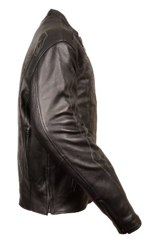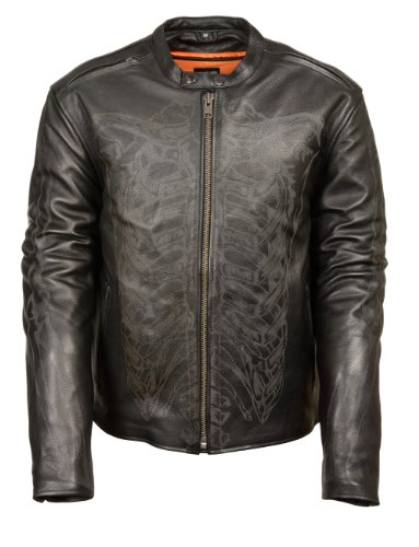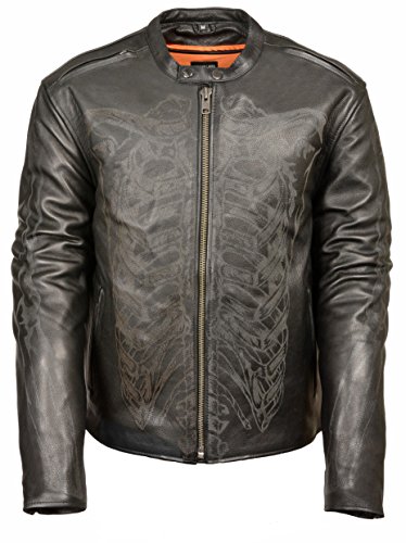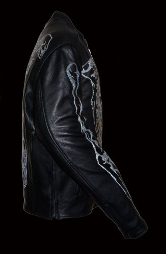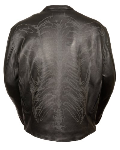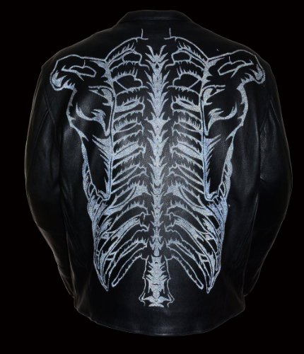 Product DescriptionMen's Leather Motorcycle Jacket w/ Reflective Skull Bones 2 Inside Gun Pockets0