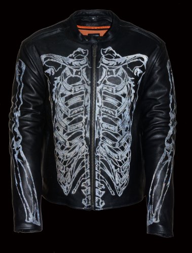 Milwaukee Men's Reflective Skeleton Bones Leather Jacket