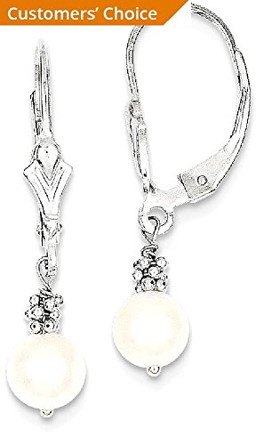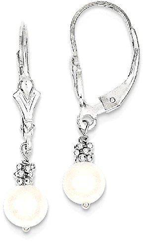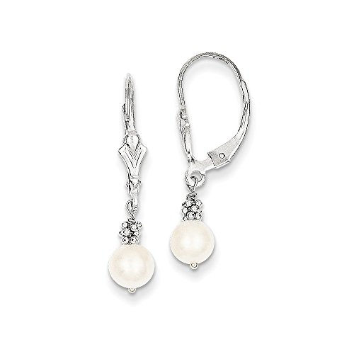 ICECARATS DESIGNER JEWELRY 14K WHITE GOLD 6MM FRESHWATER CULTURED PEARL LEVERBACK EARRINGS LEVER BACK FOR WOMEN