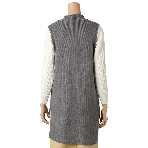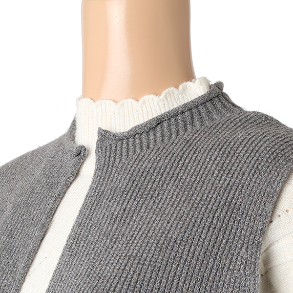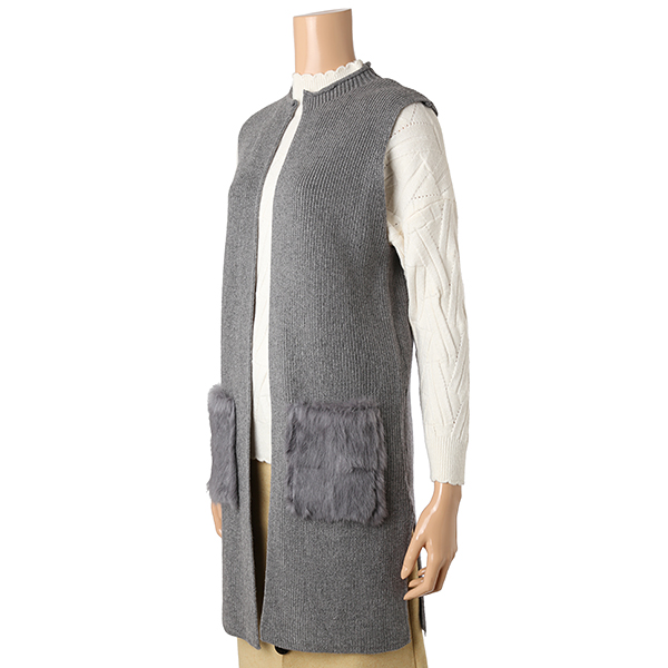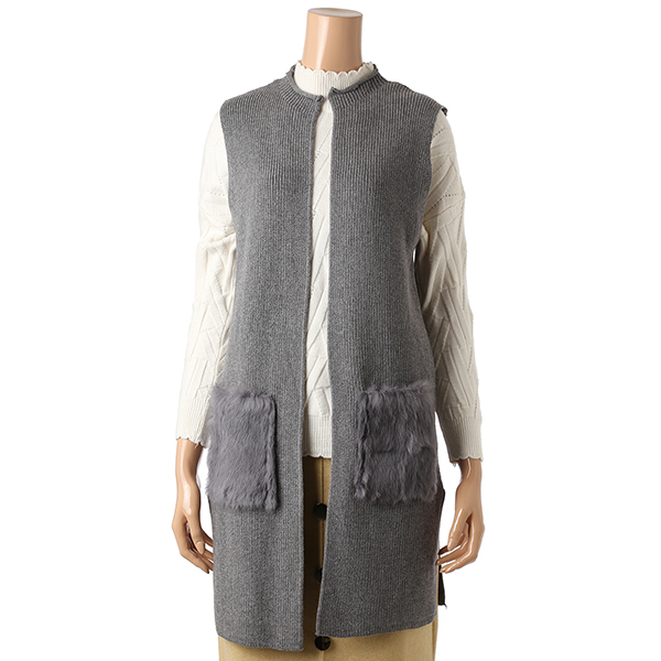 퍼 포켓 디테일과 기본 라인의 니트 베스트로 슬림한 핏이며