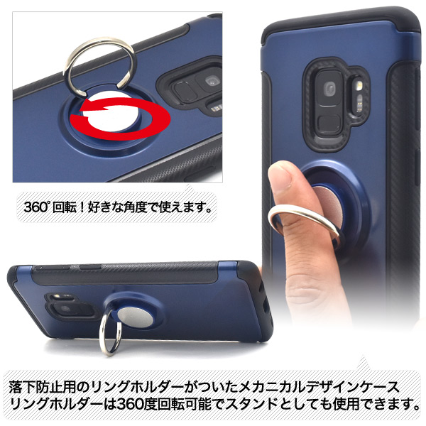 落下防止に最適なスマホリングホルダー付き! Galaxy S9 SC-02K/SCV38用スマホリングホルダー付きケース |