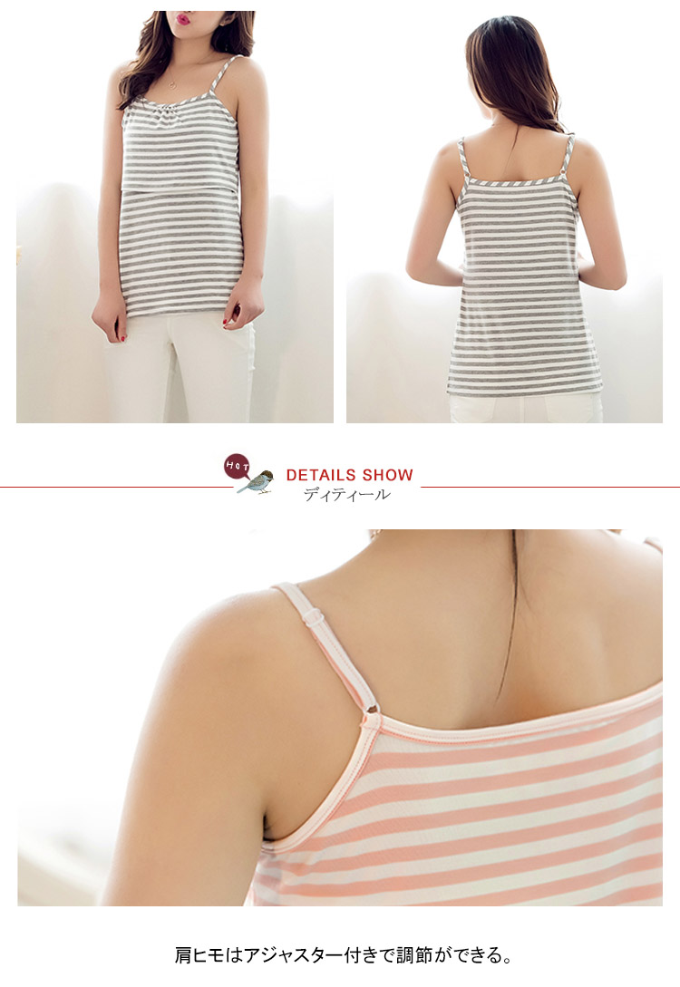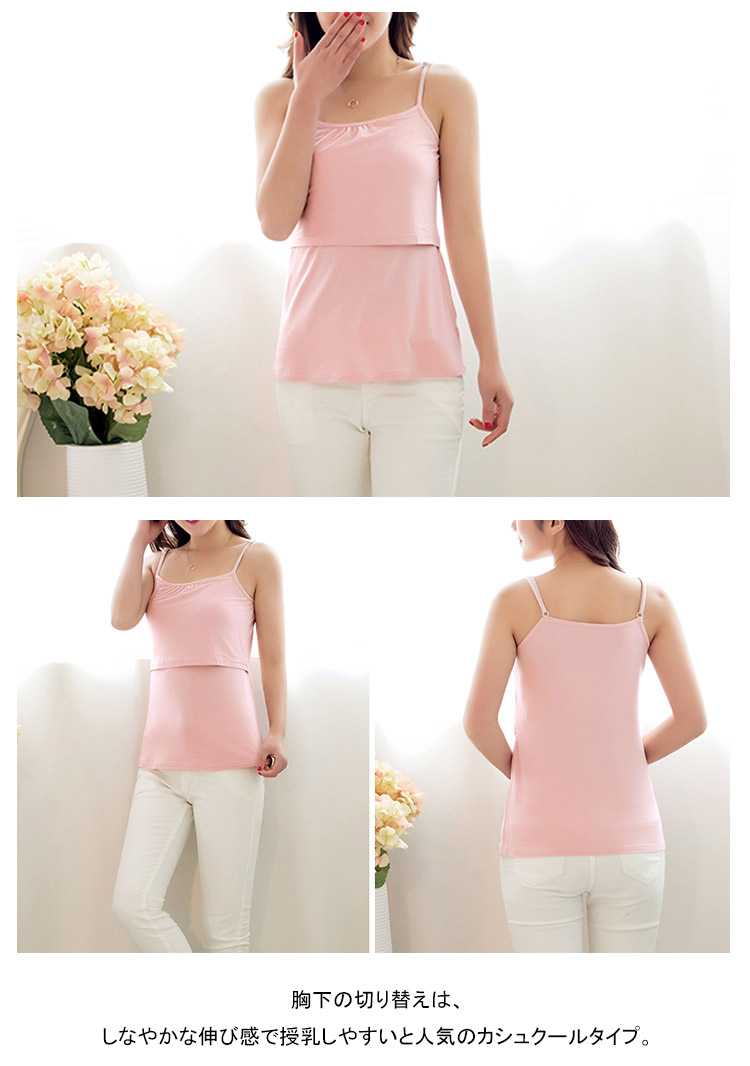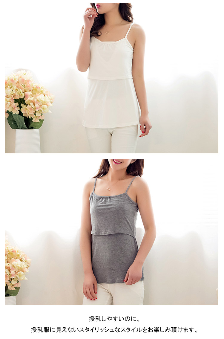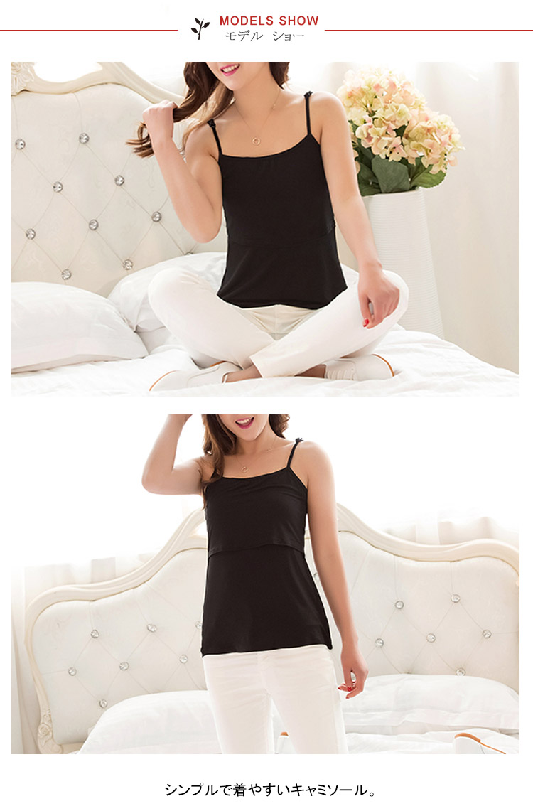 | シンプルで着やすいキャミソール。 素材にもデザインにも技あり!ベーシックなカラーでシンプルに着まわせる授乳トップスです。汗をかきやすい季節は、敏感なママのお肌もダメージを受けがち。 胸下の切り替えは、しなやかな伸び感で授乳しやすいと人気のカシュクールタイプ。 授乳しやすいのに、授乳服に見えないスタイリッシュなスタイルをお楽しみ頂けます。 | |