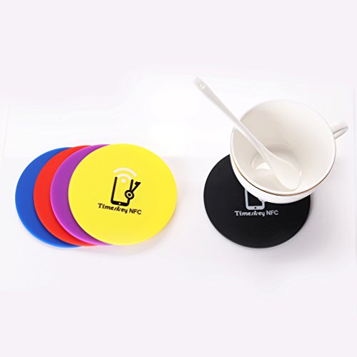 Timeskey NFC coaster Details: - Durable, Water-proof, used environmental silicone material, can accept 356 degrees Fahrenheit high temperature, can work in water and can adapt to acid-base environment - Ntag 215 NFC Chip with 504 bytes of memory - 5 colors (black, purple, red, blue, yellow) ,It is not just an NFC label, it is also a desktop upscale decor, is a perfect coffee coaster and coaster. - can be used on all kinds of surfaces for cold and hot drinks - Not designed for use on metal surfaces - Suitable for iPhone 8 iPhone 8 Plus iPhone X, Huawei Mate 7/ Mate 8 / Mate 9,Samsung Galaxy S8/ S8 /S5/S4/Note 3/Note 2, NOKIA Lumia920/820, BLACKBERRY Z10/Q10, LG Nexus4/Nexus5, HTC one, Sony Xperia, and all NFC enabled mobile phones. - Please do not bend as the middle part of the NFC coaster is the position of the NFC chip. If the chip is damaged, it can only be a coaster and can no longer be used as an NFC label