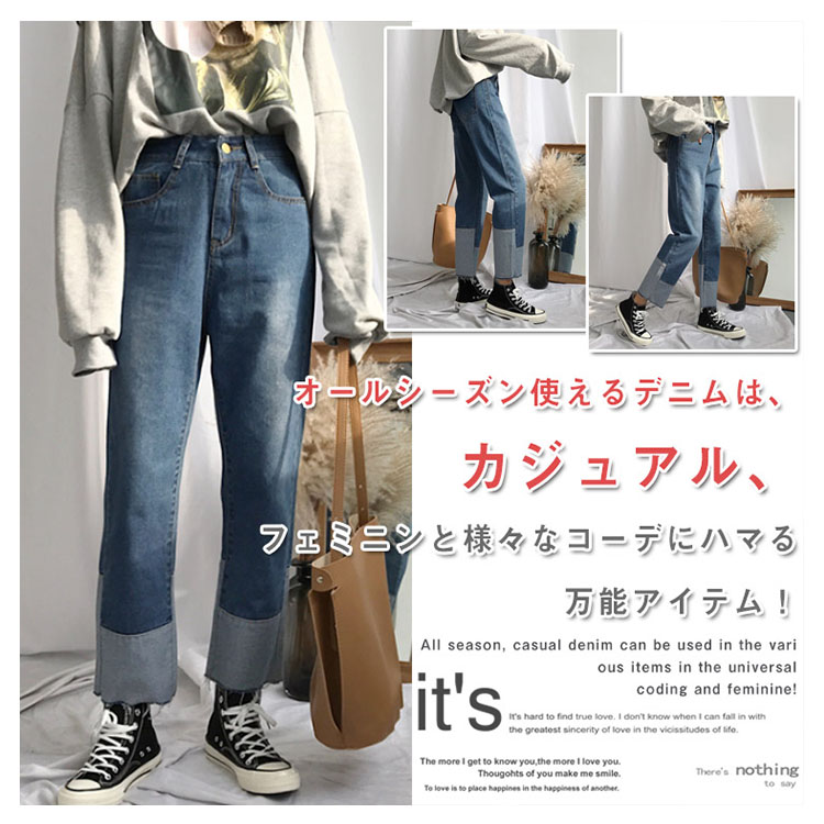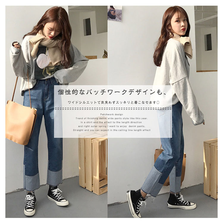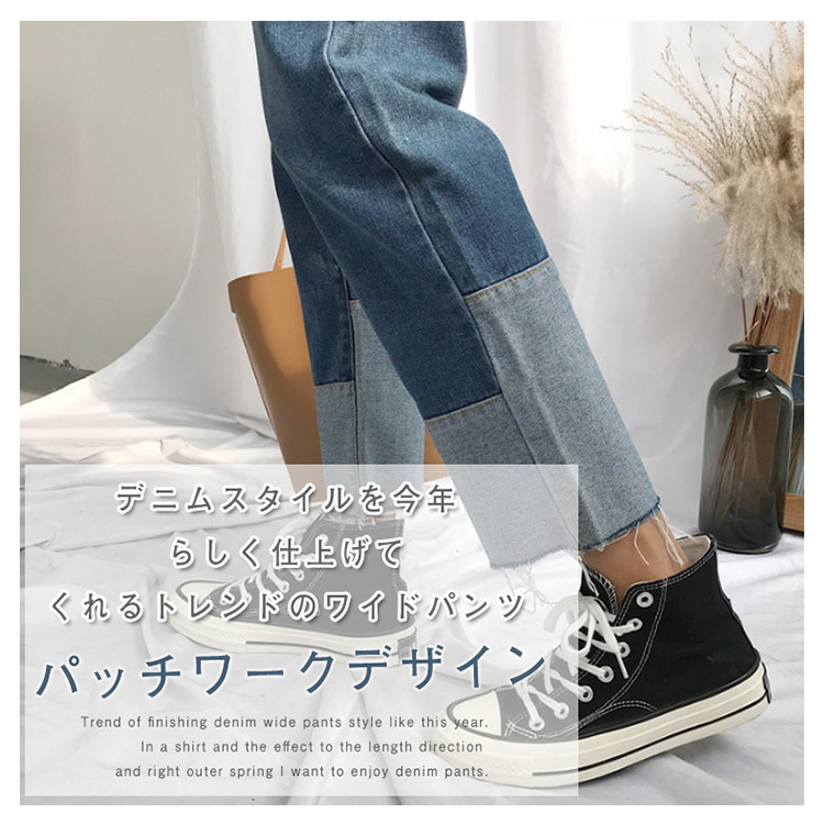 | トレンド感たっぷりのパッチワークデザインが目を引くデニムです。個性的なパッチワークデザインも、ワイドシルエットで気負わずスッキリと着こなせます◎オールシーズン使えるデニムは、カジュアル、フェミニンと様々なコーデにハマる万能アイテム! | |