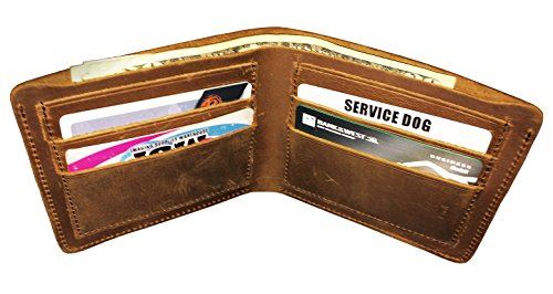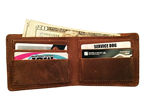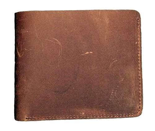 -. Title : Mens Brown Vintage Crazy Horse Genuine Leather Bifold Wallet Minimalist