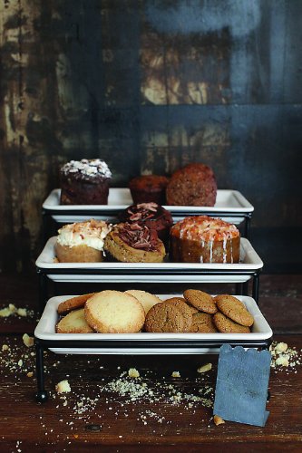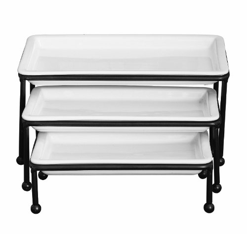 Creative Co-Op Stoneware White Trays with Metal Stand