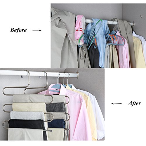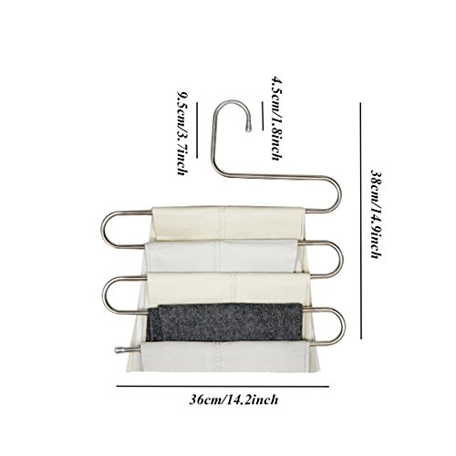 -. Feature : Material -S-type made of high quality, smoothly stainless steel which is durable and won¡¯t get rust, can protect clothes from scratching and eliminates creases / Space saver-5 layers for each rack, save the space in your chest so that you can storage other things / Size-14.9''(lengh)x14.2''(width)x0.3''(thickness) / Purpose-keep your jeans, slacks, scarves, tie...organized, also perfect for keeping coats, clothes, towels, trousers, pants, shirts, blouses, sweat pants compact / Feature- S-shape Fashionable shape with no sharp edges ,lightweight. Compatible with all kinds of clothes, keep your closet clean and orderly