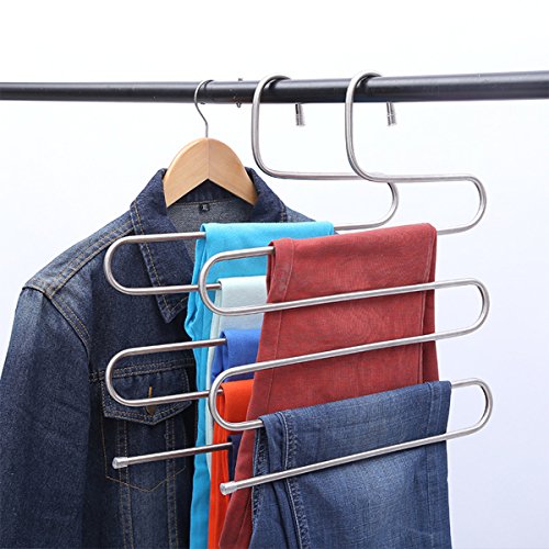 -. Title : Surblue S-shape Stainless Steel Multi-Purpose Pants Hanger 5 Layers Storage Organizer for Clothes Jeans Tie Scarf