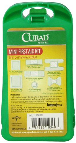 -. Feature : Fits into any purse, backpack, gym bag or suitcase / Includes basic first aid items such as latex free bandages, gauze pads and alcohol swabs / Latex free