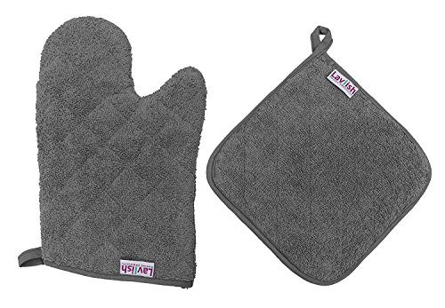 Lavlish Oven Mitt & Pot Holder Set 100% Cotton, Gray
