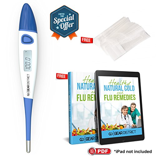 Gear District Best Flexible Clinical FDA Approved Quick 10 Second Read Digital Oral - Rectal - Underarm Baby / Child / Adult Temperature Thermometer + 10 Free Disposable Probes