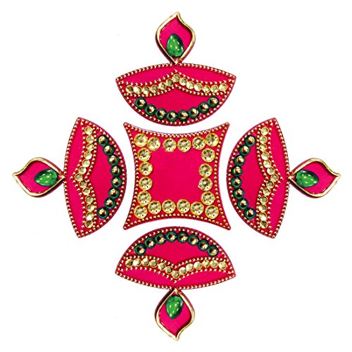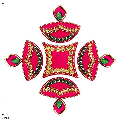 Valentine Gifts Ideas Pink Diwali Rangoli Floor Decorations Acrylic Shape with Studded Stones and Sequins, Traditional Festive Home Decor