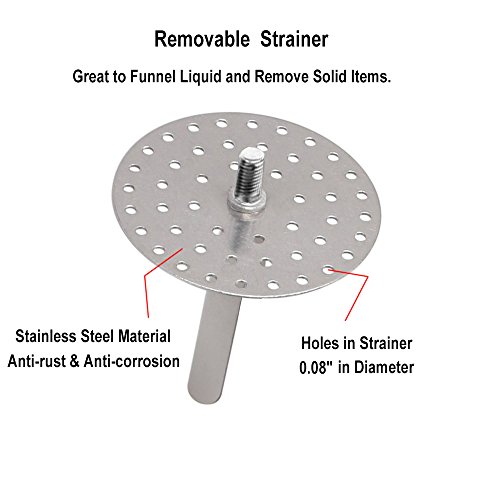 With a removable strainer the funnel can easily filter out unwanted solid particles from liquid.