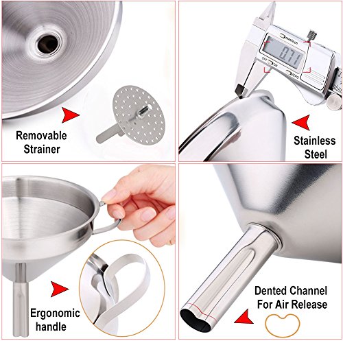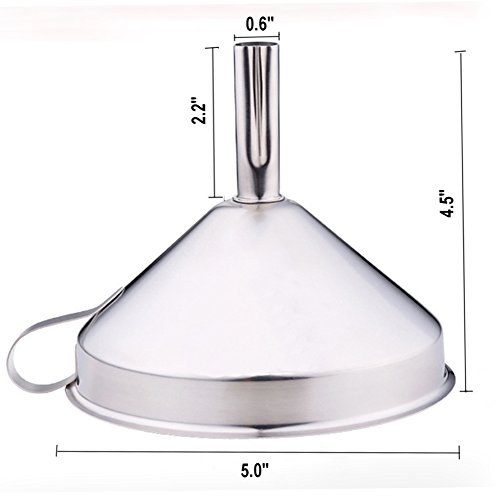 Camkey Stainless Steel Funnel with Removable Strainer/Filter For Cooking, Essential Oils and Flask-Filling,5-Inch