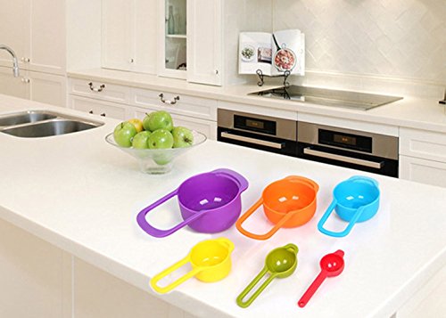 The set is bright and colorful, it brings more fun for your cooking and encourages kids' interests. Each cup or spoon has different color for better distinction.