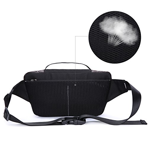-. Feature : HIGH QUALITY WATERPOOF PU MATERIAL: Made of high PU material, which is waterproof and durable. Breathable panels help keep everyday cool and pleasure. / LARGE CAPACITY: Three SBS zippered pockets, one main pocket, one interior hidden pocket, one front pocket, his bag can hold small stuffs you need for your busy day. The fanny pack for the latest smartphones, your money, keys, cell phone, umbrella credit cards, passports and so on. / MORE FUNCTIONAL: Casual simple fashionable lightweight bag, suit for outdoor activities, cycling, climbing, fitness, hiking, running, cycling, shopping etc. / MORE COMFORTABLE: The soft waist Strap adjust up to 44.5inch(113cm), because the waist strap belt is wide and stable,the belt will not move and falling when you use it.The breathable padded back that provide you with a comfortable and custom fit wherever you go. / APPROX DIMENSIONS: 15.7 x 2.9 x 5.1 inches (L x W x H).