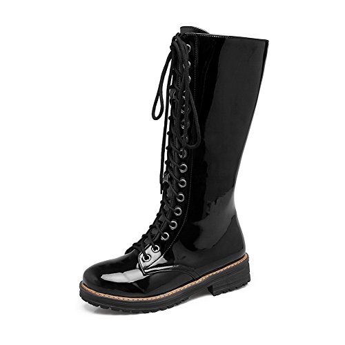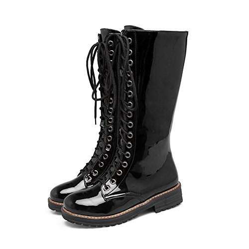 (BalaMasa)/Women's/Boots/DIRECT FROM USA/BalaMasa Womens Mid-Calf Bandage Zipper Patent Leather Urethane Boots ABL10563