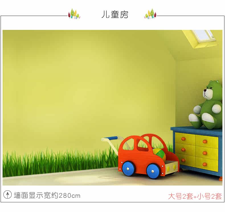 新草地 幼儿园走廊过道踢脚线地脚线移门 小草墙贴橱窗玻璃贴纸画