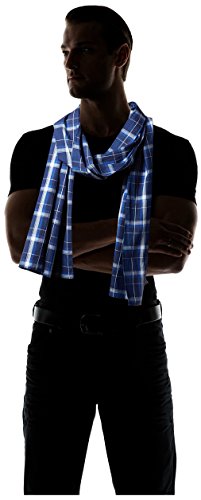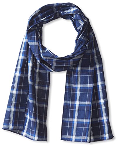 J. McLaughlin Men's Cotton Plaid Scarf, Dark Blue/Blue