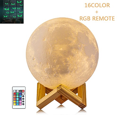 3D Moon lamp ,SIEGES 16 Colors RGB Moonlight Desk Lamp USB Rechargeable Baby Night Light ,Dimmable Touch Sensor / Remote With Luminous Wall Sticker Decals for Home Decoration Christmas Gifts - 5.9inch