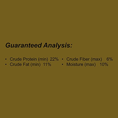素材構成:たん白質 22%以上 脂質 11%以上 繊維 6%以下 灰分11% 水分 10%以下 代謝エネルギー 340.9 kcal